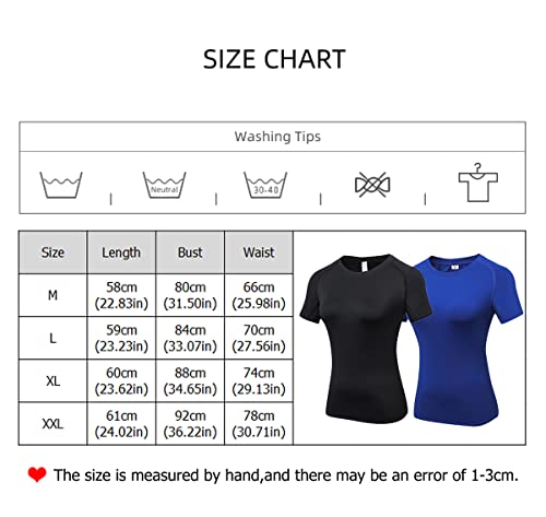 Barrageon Maglietta Compressione Donna Manica Corta 2 PCS Top Elastica Camicia Traspirante Asciugatura Veloce Esercizio Fitness Allenamento (Blu-XL)