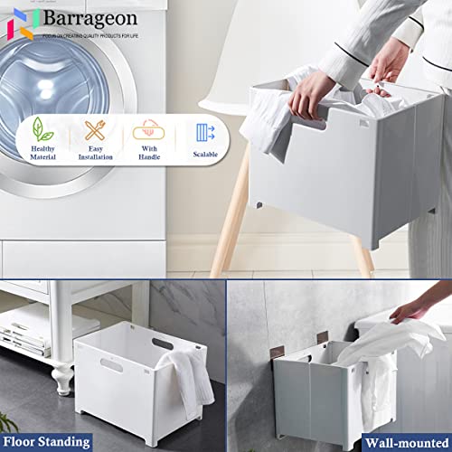 Barrageon Portabiancheria 32 litri Montaggio Multifunzionale Parete Pieghevole Cesta Bucato Con Maniglia Bagno Camera Letto Giocattolo Portaoggetti Cesto (Bianco)