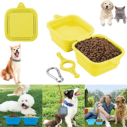 Barrageon Viaggio Ciotole Pieghevoli per Cani e Gatti 2 in 1 Ciotola Animali Portatile Silicone Cibo Acqua Alimenti Mangiatoia All'aperto Portatile Escursionismo Campeggio Quadrato - Giallo