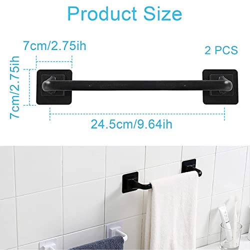 2 barre portasciugamani in plastica, montaggio a parete, coperchio per vaso, autoadesivo, organizer per bar, accessori da bagno, per cucina, bagno, WC (nero, 24,5 cm)