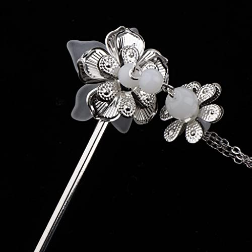Barretta per Capelli Floreali con Lunghe Nappe Orecchini di Gancio Ciondolo di Perle Cristallo Stile Retrò Regalo Festa Per Ragazza - bianca