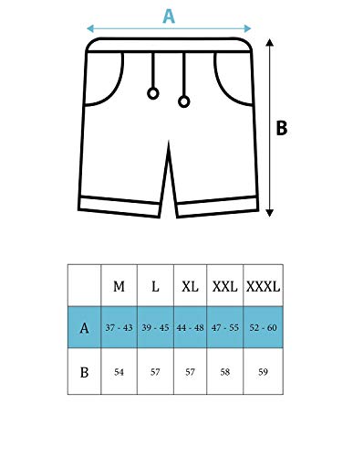M - L - XL - XXL - XXXL GUIDA ALLE TAGLIE NELLE FOTO.A: LA PRIMA CIFRA E' IL CAPO CON ELASTICO NORMALE. LA SECONDA CON ELASTICO A MASSIMA ESTENSIONE. B: LUNGHEZZA DEL CAPO