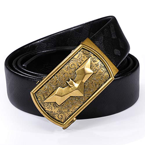 Barry.Wang - Cintura a cricchetto da uomo, in vera pelle con fibbia automatica, set regalo alla moda per uomo Una fibbia di Batman. vita 44/51",cintura 59" (150 cm)
