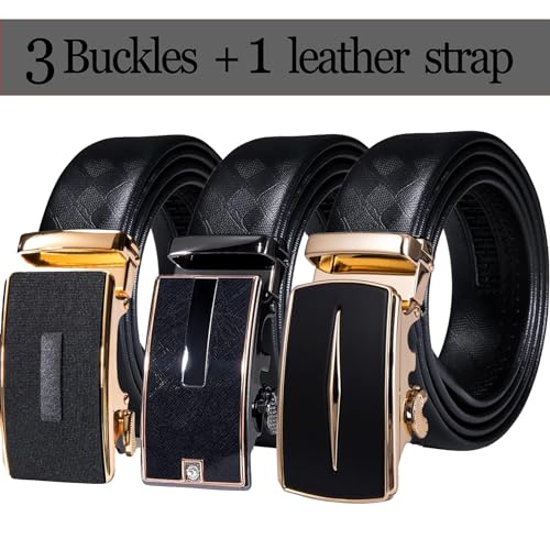 Barry.Wang Cintura a cricchetto da uomo in pelle con 3 fibbie automatiche cinghia regolabile, Nero 2