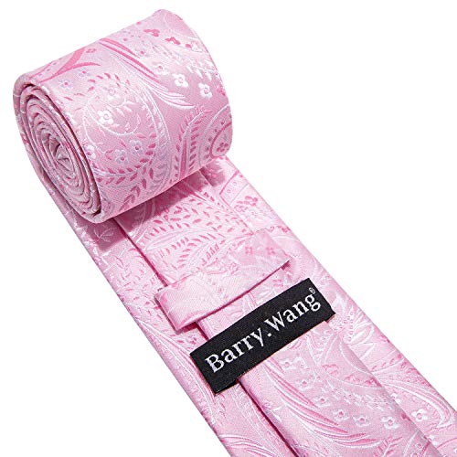 Barry.Wang, elegante set di cravatta, gemelli e pochette da uomo, motivo floreale, materiale: seta Pink Taglia unica