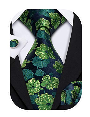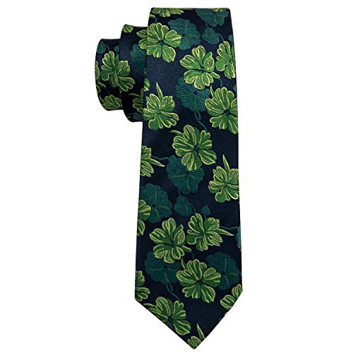 Barry.Wang, elegante set di cravatta, gemelli e pochette da uomo, motivo floreale, materiale: seta Green Taglia unica