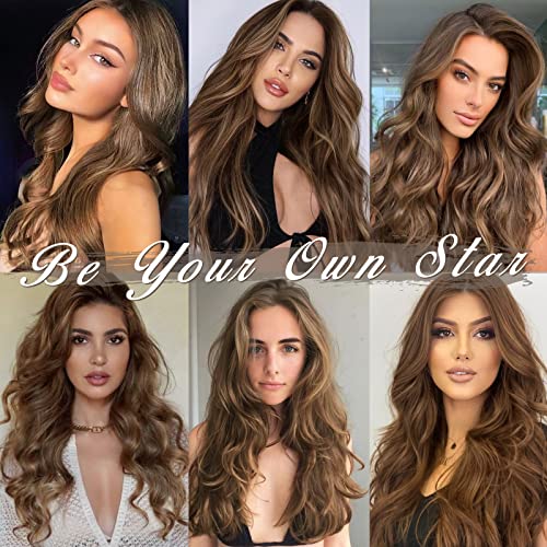 BARSDAR Clip nelle Extension dei Capelli, 5PCS Clip Ondulata Lunga nelle Extensions Capelli Sintetico Naturale Posticci per Donne Ragazze -50cm Mescolare il Castano Scuro Auburn in Modo uniforme