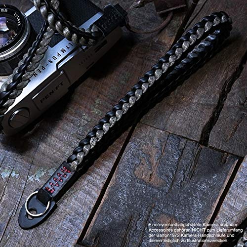 Barton 1972 - Cinturino da polso per fotocamera, realizzato a mano, in pelle intrecciata, design con cinturino per fotocamera Braidy Crow, colore: nero anticato, con cuciture a mano, colore: rosso
