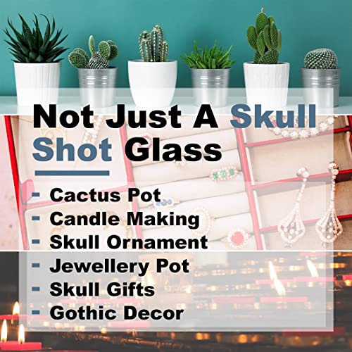 Set di 4 bicchieri con teschio: fantastici bicchierini con teschio per feste per servire i tuoi scatti per feste di Halloween, questi occhiali con teschio sono realizzati in resistente vetro pressato e presentano un design a teschio gotico. Conservare in congelatore per uno scatto extra fresco