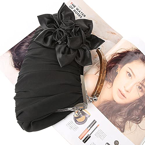 Baryuu Pochette e Clutch da Donna Elegante Borsetta da Sera Fiori di Seta Pochette da Cerimonia per Matrimonio Party Sposa Cocktail Festa,Nero
