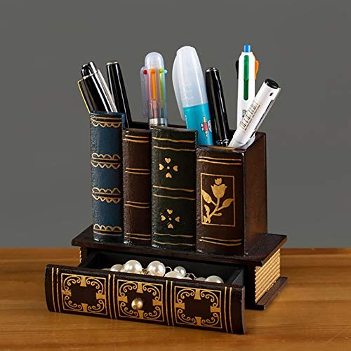 Basage - Portapenne multifunzione in legno a forma di libro in legno, decorazione per la casa, matite, scrivania, cassetto, cancelleria, regalo