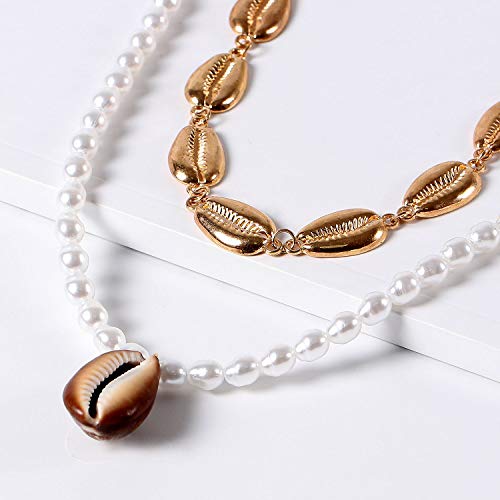 Bascolor 2 Pezzi Collana Conchiglia Choker Conchiglie e Collana Girocollo Perle Elegante Regolabile Conchiglia Perle Collana Ciondolo Pendente Boho Gioielli Set Collana Girocollo per Donna Ragazza