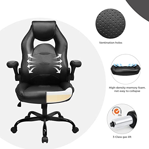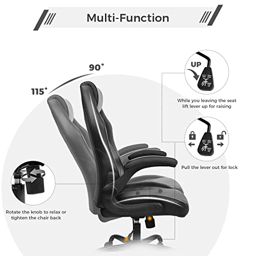 BASETBL Sedia da Ufficio Ergonomica 150kg, Poltrona da Ufficio Girevole, Sedia Gaming Ufficio con Braccioli Pieghevoli, Design, Regolabile in Altezza,Funzione Basculante