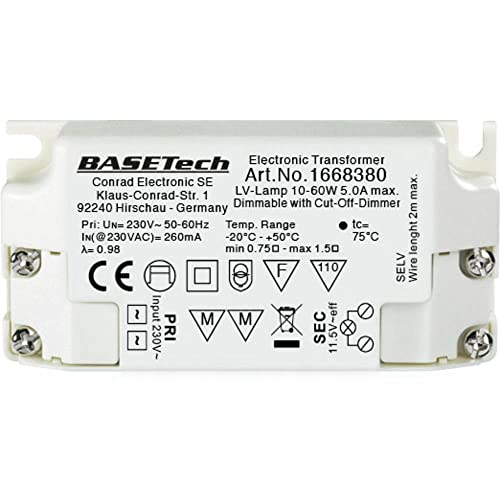 Basetech BT-1668380 Trasformatore elettronico 12 V 10-60 W dimmerabile con taglio di fase
