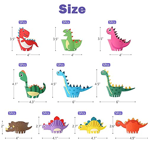 ✔【Pacchetto Torta Dinosauro】: Riceverai 50 involucri per torta dinosauro (10 stili diversi), molto adatti per la festa di compleanno dei tuoi bambini dinosauri, feste in classe, baby shower, cene, raccolta del tè pomeridiano a casa, ecc.