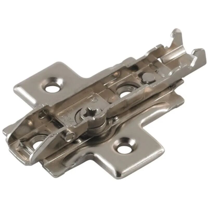 Base di montaggio a croce per cerniere Grass. Fori per viti da truciolare d.3,5 mm Altezza: 2 mm La regolazione in altezza di +/-2 mm avviene tramite coclea