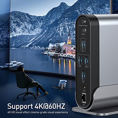 Baseus Docking Station Universale USB C a Quadrupla Display con 2 HDMI&2 DP, 3 USB 3.0, Audio, Gigabit Ethernet, Lettore di schede SD/TF, per Windows, Mac, Laptop