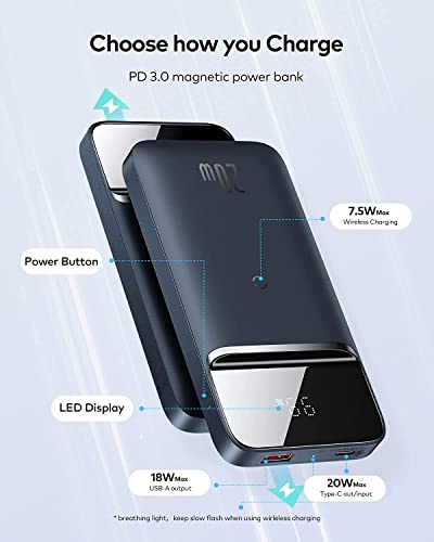 Baseus Magnetic Wireless Power Bank, 10000mAh Wireless Power Bank, 15W Wireless Charging e PD 20W USB-C, Display LED Caricabatterie Portatile Magsafe para iPhone 14/13/12/Pro/Mini/Pro MAX
