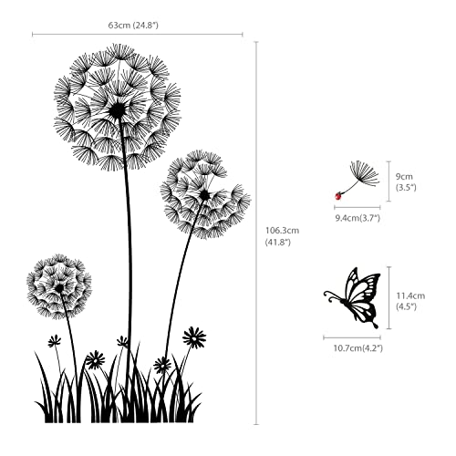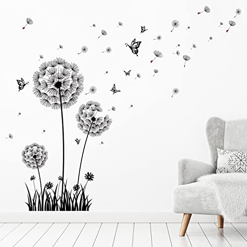 BASHOM BS-105 Dente di Leone Adesivi da Parete Danza nel Vento Fiori decorazione farfalle nero Sticker Murali Soggiorno Camera Letto per Bambini Murale