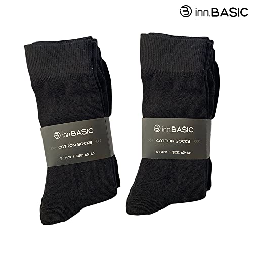 Inn.BASIC Calzini premium per uomo e donna, confezione da 10 pezzi, in cotone, colore nero, 10 paia di colore nero., L