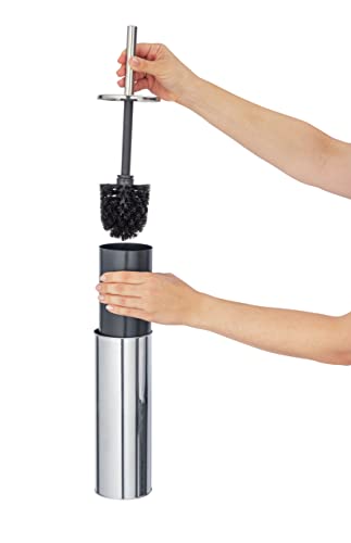 Con scopino per WC: nella confezione è incluso uno scopino per WC con testa intercambiabile nera di diametro 7,5 cm e manico in acciaio inox. L'indispensabile strumento da bagno pulisce il WC in modo igienico e affidabile. Un inserto in plastica all'interno del portaspazzolino garantisce una distribuzione pulita.