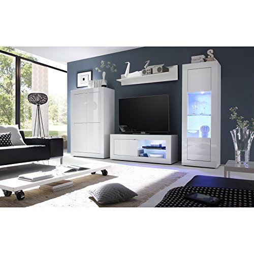 L&C Basic Elemento 4 Ante, Legno, Bianco Laccato Lucido, Taglia Unica