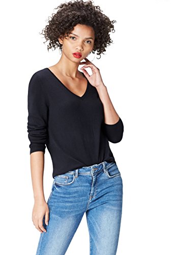 Find. Bonn Basic V Neck, Felpa Donna, Nero (Black), Medium