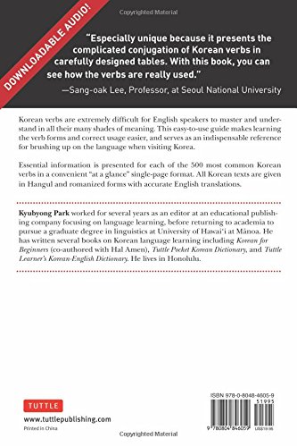 500 Basic Korean Verbs: The Only Comprehensive Guide to Conjugation and Usage (Downloadable Audio Files Included)