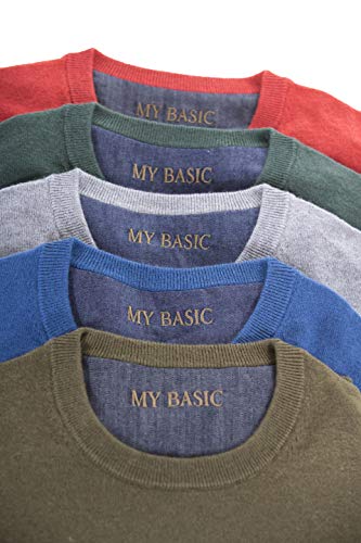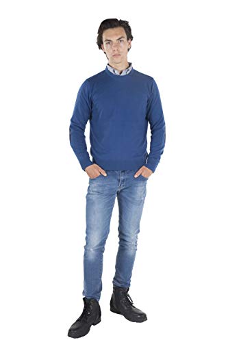 MY BASIC Maglione Uomo Girocollo in Lana, Toppe Denim sui Gomiti (M, Azzurro)