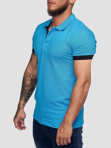 Polo da uomo basic, a maniche corte, tinta unita, slim fit, in cotone, con colletto a polo, M-XXXL, modello 14ST, 1402 turchese., M