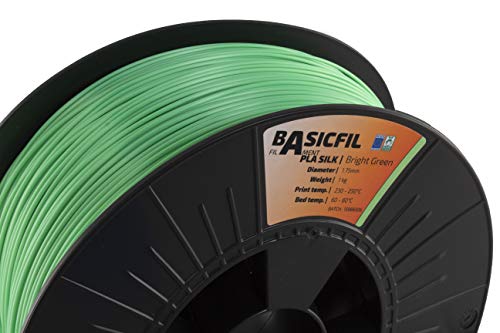 BASICFIL PLA SILK 1.75mm, 1 kg, filamento per stampante 3D, Verde Luminoso