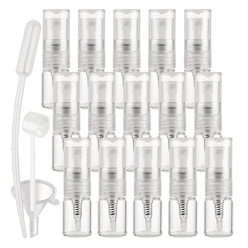BasicPacking 100 Pezzi 2ml Vuoto Flacone Spray Vetro Trasparente, Mini Spray Tascabile, Piccolo Flacone Spray per Nebbia Riutilizzabile Portatile, Bottiglia di Profumo, Cosmetica, Viaggio con Imbuti