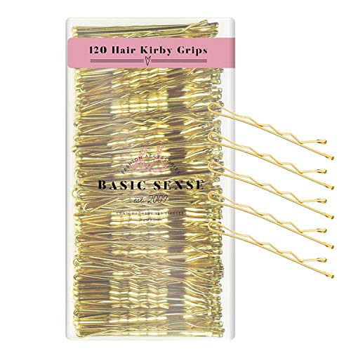 BasicSense - Confezione da 120 forcine in metallo Kirby essenziali ondulate, confezione da 5 cm, colore: oro