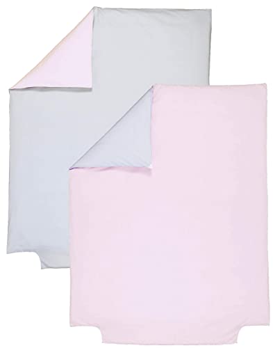P'tit Basile - Copripiumino reversibile per bambini 100% cotone organico per piumino 120 x 150 cm, colore: grigio perla e rosa, cotone by