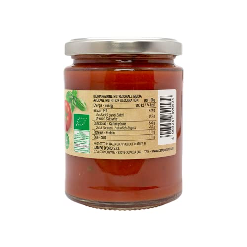 Ingredienti: pomodoro (polpa, passata e concentrato di pomodoro) 91%, olio extra vergine d'oliva, cipolla, carote, basilico 1%, sale.