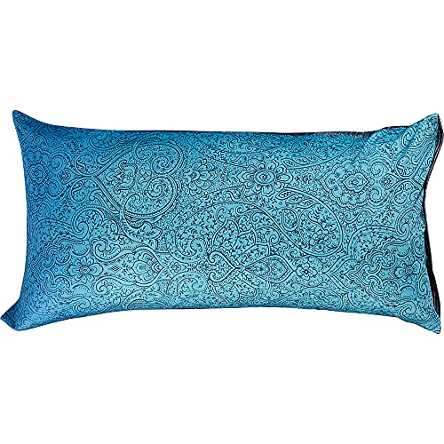Meraviglioso in blu con strisce decorate e una stampa allover che si presenta discretamente e discretamente sulla federa in raso makò di alta qualità in puro cotone