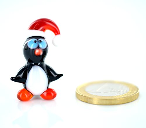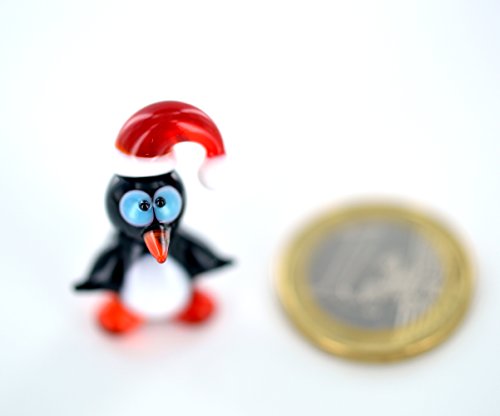 Basticks.de - Mini statuetta decorativa in vetro con pinguino rosso con tappo a forma di cappello di uccellino, da collezione