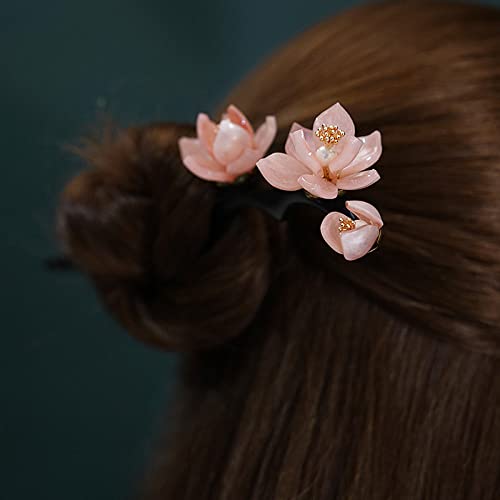 【ARTIGIANATO ECCELLENTE E DESIGN CHIC】 Artigianato intagliato a mano realistico, Elegante forma di fiore di magnolia rosa, abbellimento intarsio di perle, aggiunge un tocco vintage, spiega l'estetica tradizionale orientale. Le forcine per capelli delicatamente lucidate si attaccano, bordi lisci, chignon facili da riparare e senza danneggiare i tuoi bei capelli. Lunghezza sufficiente per mostrare la delicata forma del manico all'esterno.
