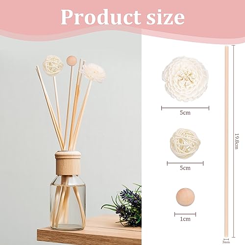 ✿La Confezione Include: Riceverete 50 pezzi di bastoncini per aromaterapia in legno di bambù naturale (3mm*20cm), 3 fiori per diffusori, 3 perle di legno per diffusori, 3 palline di rattan per diffusori, che sono adatti a quasi tutti i tipi di bottiglie per aromaterapia, sufficienti per l'uso quotidiano.