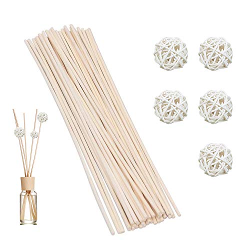 Set di Bastoncini per Ance per Diffusore: Ecco 100 bastoncini per diffusore e 5 sfere in rattan. Mettere le sfere di rattan sul bastoncino del diffusore può presentare una sensazione più bella e calda. I bastoncini di canna misurano circa 25 cm, è possibile tagliare in base alle proprie esigenze. Inoltre, in base alla concentrazione di profumo, i bastoncini di canna possono essere opportunamente ridotti o aumentati.