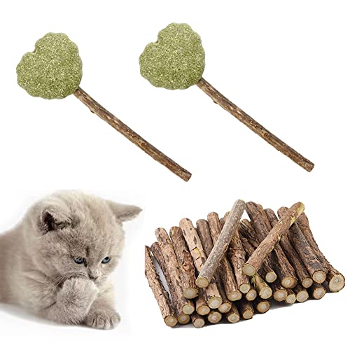Bastoncini Erba Gatta in Legno, Palline di Erba Gatta Commestibili, Bastoncini di Erba Gatta, 30+2 Pezzi Catnip Stick, Bastoncini da Masticare per Gatti, Bastoncini Cura Denti Gatti, Bastoni per Gatti