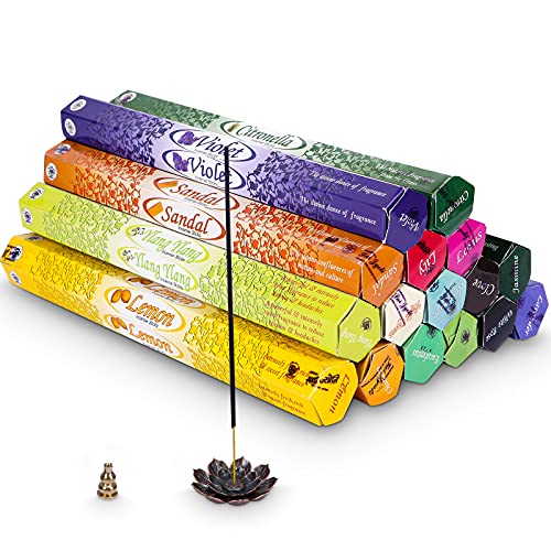 Bastoncini di Incenso confezione da 16 di lunga durata Aroma Sticks di Lunga Durata 320 Profumo bastoni Profumo bastoni Salvia,giglio,lavanda,tuberosa,ylang e molti altri,2 Porta Incenso incluso