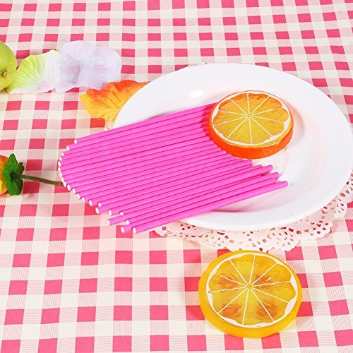 100 bastoncini per lecca-lecca per alimenti creativi multiuso di carta colorati per caramelle, cioccolato, 10 x 0,35 cm (colore: rosa)