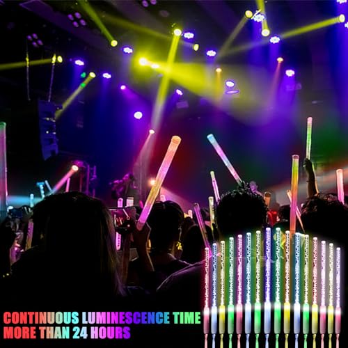 Bastoncini luminosi a LED: la confezione contiene 16 bastoncini luminosi in fibra di vetro in quantità sufficiente e diversi colori per soddisfare le vostre esigenze di decorazione e l'uso quotidiano. Agita la barra luminosa al buio per un bagliore luminoso e brillante e garantisce una festa divertente per bambini e adulti. Ideale per fili luminosi, mani libere e spettacoli di luci alle feste