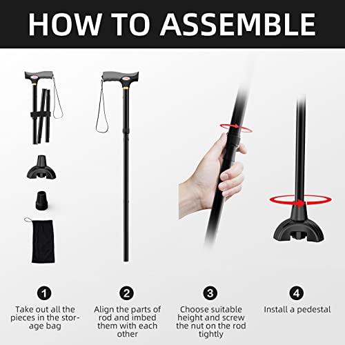 ✅ [Bastone Pieghevole] - Bastone da passeggio può essere piegata in 3 sezioni. La bastone ha una custodia in flanella, che non occupa affatto spazio.Il manico è lungo 13 cm e la superficie è fissata con gomma per aumentare l'attrito.