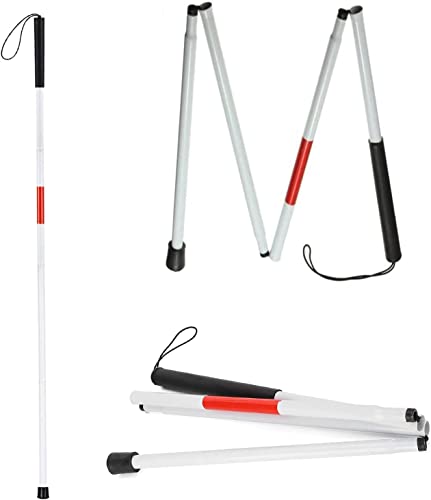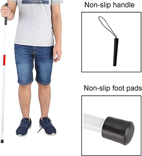 Design pieghevole: il bastone cieco pieghevole è dotato di un design pieghevole, è facile da trasportare e riporre, salvaspazio. Il bastone pieghevole in lega di alluminio a 4 sezioni può essere aperto e riposto in modo flessibile.