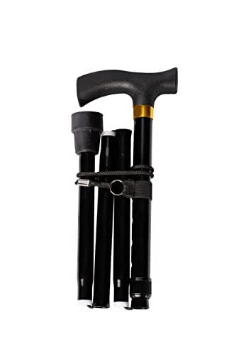 Bastone da passeggio in alluminio pieghevole e regolabile in altezza 84-92 cm, colore nero polsino Soft (657)