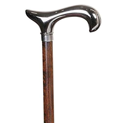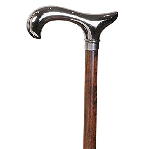 Bastone da passeggio in legno di faggio marrone con manico in argento cromato, stile derby, 92 cm