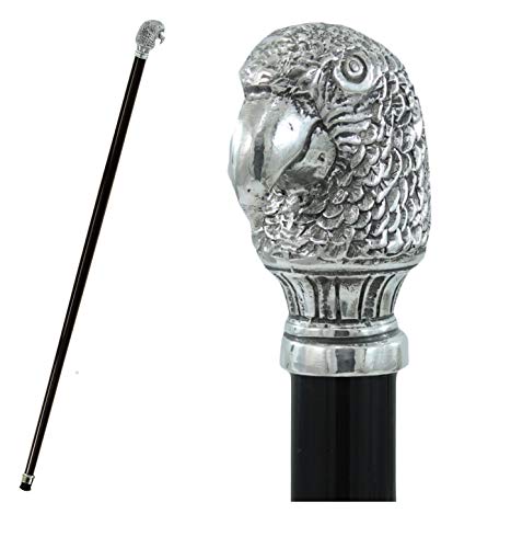 Bastone passeggio pappagallo peltro legno nero vintage classico elegante nobiliare Cavagnini