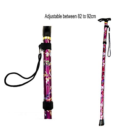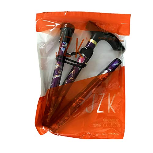 JZK Bastone da Passeggio Pieghevole Floreale Viola Estensibile Regolabile Bastone da Passeggio Altezza Regolabile con Cinturino da Polso e Puntale di Gomma per Casa e Viaggiare